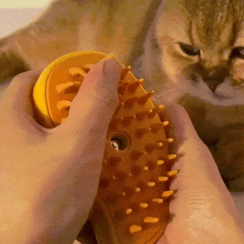 Riempi la spazzola HydroPET con acqua pulita, e, se preferisci, aggiungi oli essenziali, premi il pulsante per attivare il vapore e inizia a spazzolare il pelo del tuo animale! Fatto, è così facile!