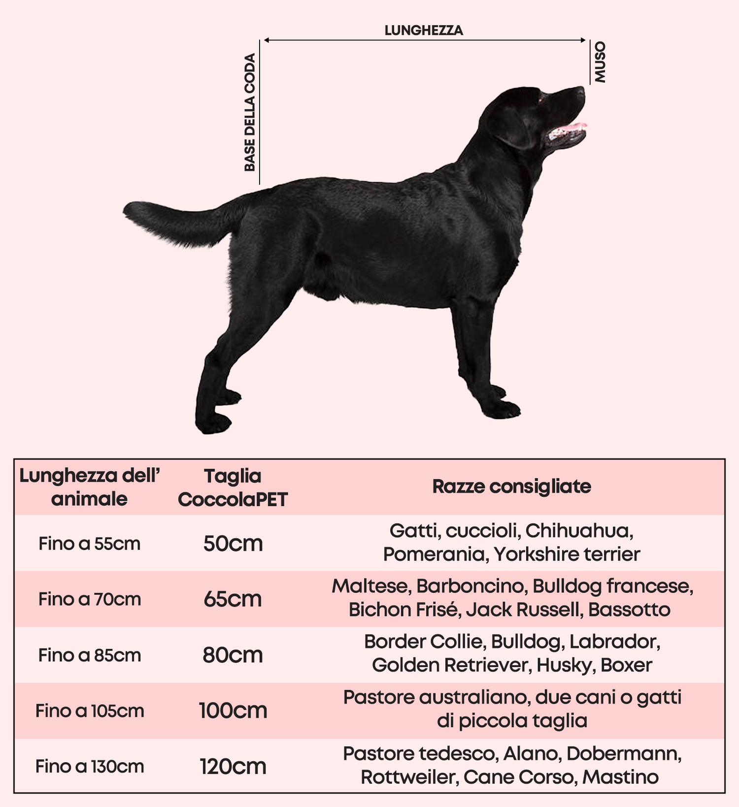 • Ti consigliamo di prendere una taglia in più in modo che il tuo animale domestico possa stare più comodo!